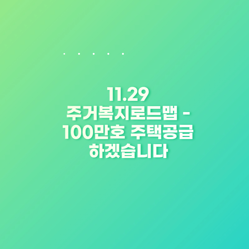 문재인 정부 출범 이후, 7월을 제외하고는 매달 부동산 정책 혹은 방향 발표가 있었습니다. 11월 역시 그냥 넘어가지 않았습니다. 2017년 11월 29일, 정부에서는 주거복지로드맵을 발표하였습니다. 이런저런 이야기가 많았으나, 결국 요점은 '각종 계층들에게 주택 잘 공급해드릴테니 왠만하면 굳이 집 사지 마시고, 청약 기다려주세요.' 였습니다.