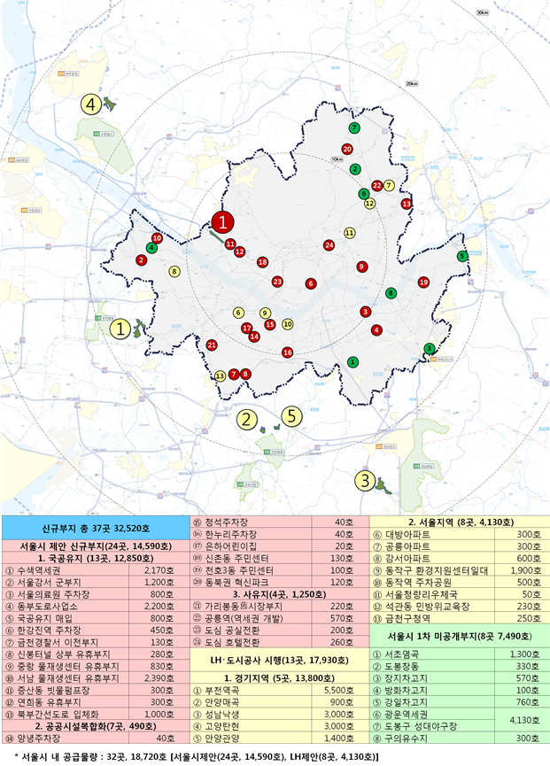 정부는 이외에도 국공유지 24곳, 유휴 군부지 4곳, 장기미집행 공원부지 4곳을 발표하였는데, 대표부지는 강남이라는 상징성을 보면 서울의료원 주차장 부지를 들 수 있겠습니다. 당시에 태릉 골프장 부지도 포함된 줄 알았는데 지금 보니 태릉은 이 때 발표한 내용에 포함되진 않았나봅니다.