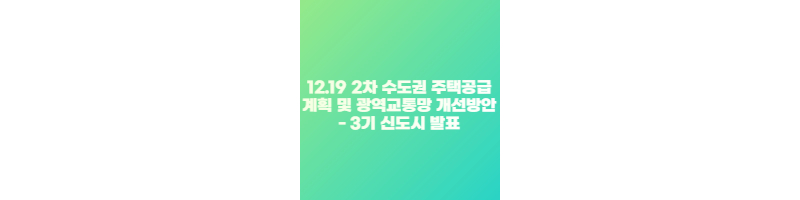 정부는 9.13을 전후로 3개의 대책을 발표하였고, 2018년 가을 겨울은 조용했습니다. 여기에 쐐기를 박는 발표를 진행합니다. 12.19 2차 수도권 주택공급 계획 및 광역교통망 개선방안 발표가 그 내용입니다. 한마디로 축약하면 3기 신도시 발표를 하였습니다. 이에 대해 리뷰를 해보겠습니다.