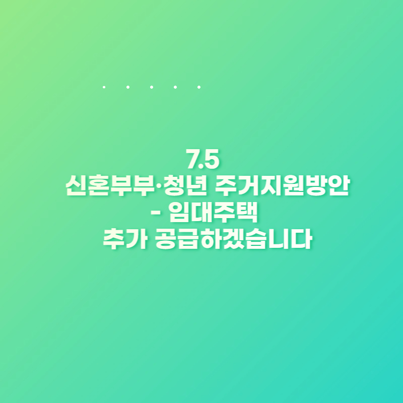 6.28 이후는 당연히 9.13 대책일 것이라 생각했는데, 중간에 두 번의 부동산 관련 정책 발표가 있었습니다. 그 중, 이번에는 2018년 7월 5일에 발표한 신혼부부 및 청년 주거지원방안에 대해 살펴보겠습니다. 제가 읽어봤을 때는 임대주택을 조기에 공급하겠으며, 신혼희망타운도 잘 공급하겠다는 의지로 해석됩니다.